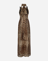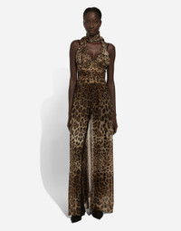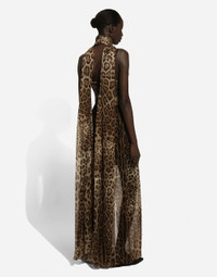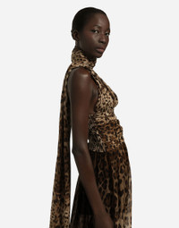 In the “WOMAN SS 24” Collection, the imagery of old Sicily interacts with the masculine, with sensual shapes, lace, nude tones and delicate overlays, to create pieces that move amid clean silhouettes, the elegance of the 1960s, the contrasts of black and white and luxurious textures. The designers are reworking their signature style and their iconic Sicilia black color to convey an aware, seductive and confident Sicilian WOMAN who is imbued with sensuality. Long leopard-print chiffon dress: • Leopard print • Plunging V-neck • Sleeveless with scarf detail on neck • Stretch silk crepe de chine underskirt • Rear fastening with scarf on the neck and short zipper on skirt • The piece measures 115 cm from the waist down on a size IT 40 • The model is 175 cm tall and wears a size IT 40 • Made in Italy External composition: 100% Silk Internal composition: 91% Silk 09% Spandex