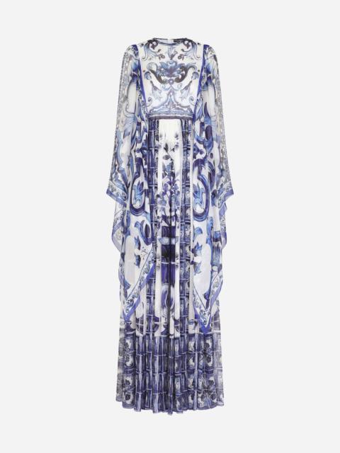 Long majolica-print chiffon dress