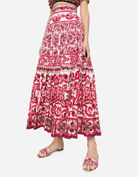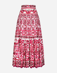 Cotton poplin long skirt with Majolica print: • Multi-colored • High-waisted • Unlined • Rear zipper and hook-and-eye fastening • The piece measures 100 cm from the waist down on a size IT 40 • The model is 175 cm tall and wears a size IT 40 • Made in Italy The difference in the print placement that you may find on this product is a feature of Dolce&Gabbana’s “Handmade” pieces. A detail that makes every garment or accessory unique and exclusive. Care And Details External composition: 100% Cotton
