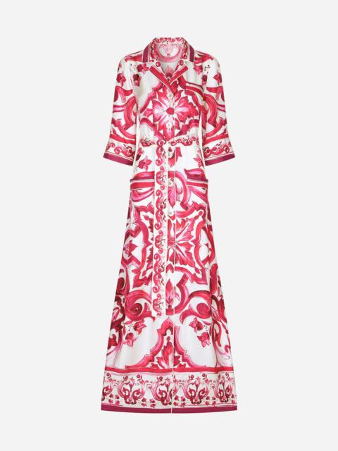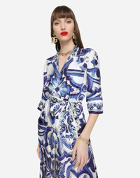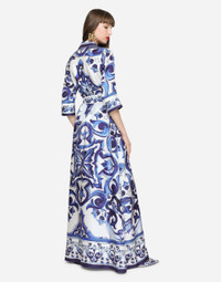 Long majolica-print twill shirt dress