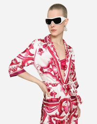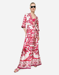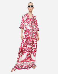 Long silk twill shirt dress with Majolica print: • Multi-colored • Shirt collar • Long sleeves • Patch pockets • Regular fit • Unlined • Button fastenings and belt • The piece measures 154 cm from the back of the neck on a size IT 40 • The model is 175 cm tall and wears a size IT 40 • Made in Italy The difference in the print placement that you may find on this product is a feature of Dolce&Gabbana’s “Handmade” pieces. A detail that makes every garment or accessory unique and exclusive. Care And Details External composition: 100% Silk