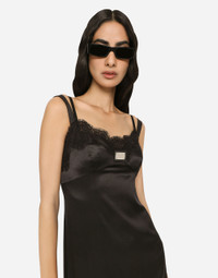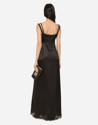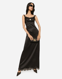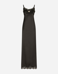 Long silk satin slip dress with the Dolce&Gabbana tag: • Black • Square neckline • Sleeveless with shoulder straps • Unlined • Rear zipper and hook-and-eye fastening • The piece measures 130 cm from the center back on a size IT 40 • The model is 175 cm tall and wears a size IT 40 • Made in Italy Care And Details External composition: 77% Silk 16% Cotton 4% Polyamide 3% Spandex