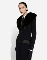 Long stretch silk georgette coat with faux fur collar and the Re-Edition label: • Black • Detachable faux fur shawl neck • Long stretch satin-lined sleeves • Slim fit • Lined • Covered button fastenings • The piece measures 80 cm from the waist down on a size IT 40 • The model is 175 cm tall and wears a size IT 40 • Made in Italy Care And Details External composition: 85% Silk 15% Spandex Internal composition: 92% Silk 8% Spandex