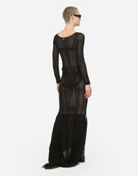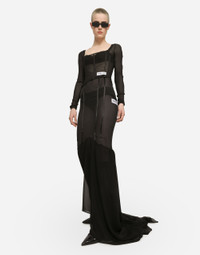 Long silk skirt with mermaid ruffle: • Black • Regular rise • Stretch silk crepe de chine underskirt • Rear zipper and hook-and-eye fastening • The piece measures 110 cm from the waist down on a size IT 40 • The model is 175 cm tall and wears a size IT 40 • Made in Italy Care And Details External composition: 95% Silk 5% Spandex Internal composition: 91% Silk 9% Spandex