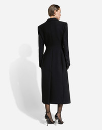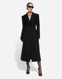 Long single-breasted wool cady coat: • Black • Peak lapels • Long sleeves • Shoulder pads • Slim fit • Flap pockets • Stretch silk satin lining • Button fastenings • The piece measures 125 cm from the center back on a size IT 40 • The model is 175 cm tall and wears a size IT 40 • Made in Italy Care And Details External composition: 90% Virgin Wool 10% Polyamide Internal composition: 92% Silk 8% Spandex