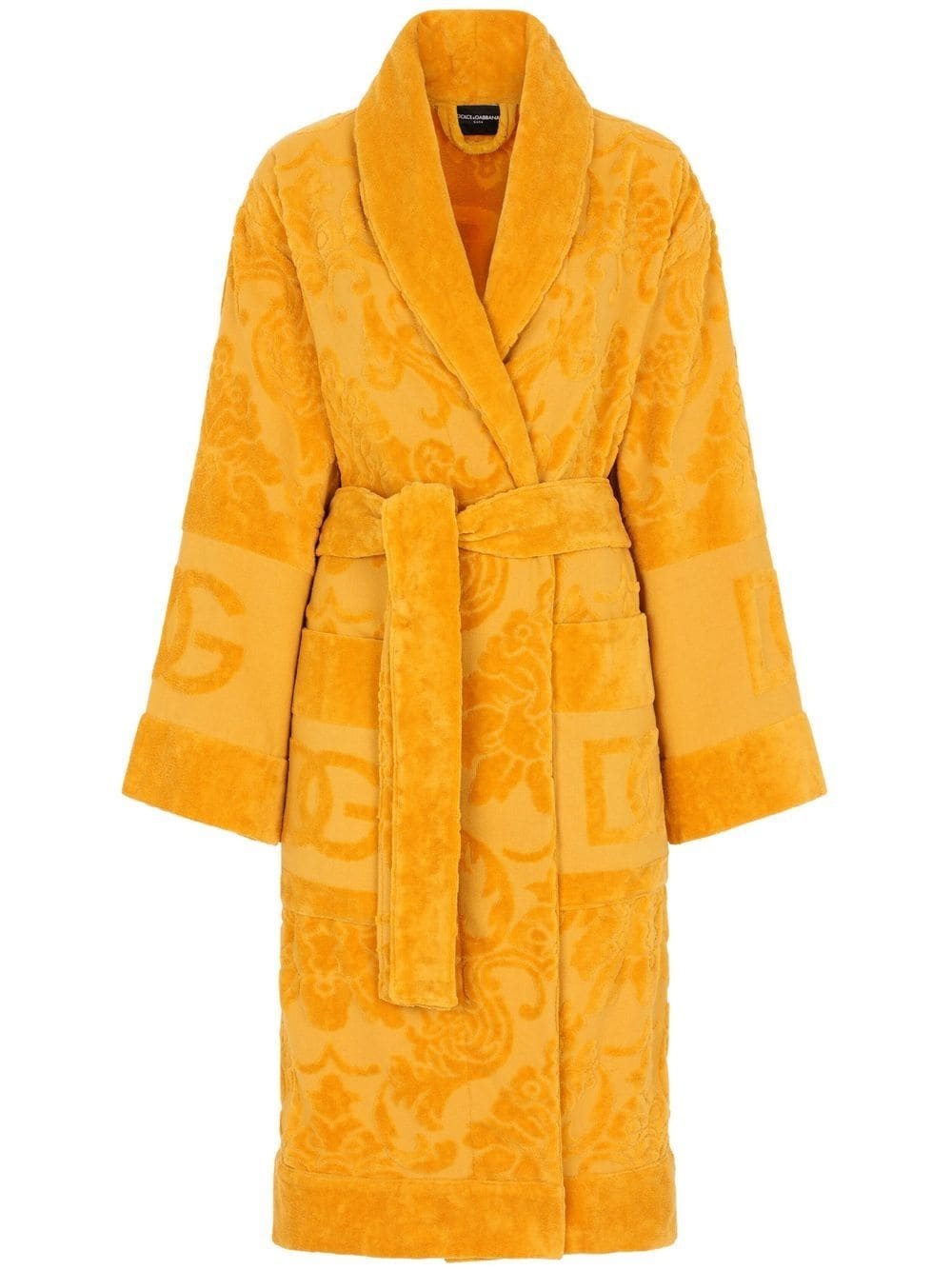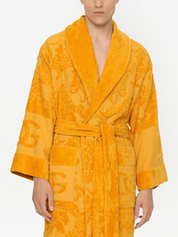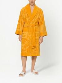 terry cotton jacquard bath robe Highlights - Orange - Cotton - Tonal design - Monogram pattern - Shawl lapels - Tied waist - Mid-length - When buying this unisex item, keep in mind that it is graded in standard men's sizing Made in Italy Composition Cotton 100%