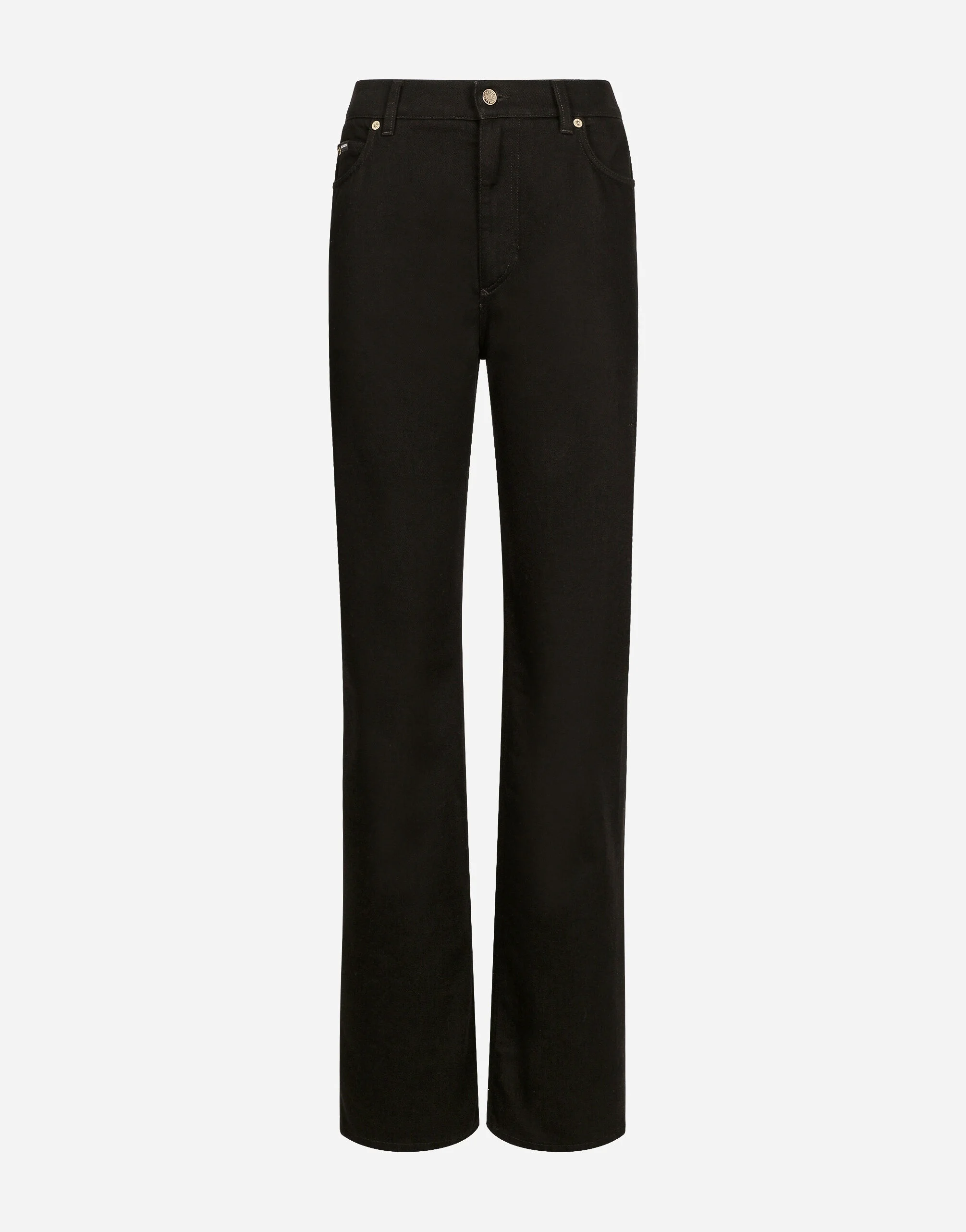 The DNA collection is distinguished by timeless shapes, bringing together three concepts: Sicilian flair, tailoring and sensuality. Nero Sicilia black and optical white predominate and pair with colors that catapult us onto the island of Sicily and make us dream. The designers channel the timeless wardrobe made up of creations that are instantly unmistakable in their simplicity, presenting us with sophisticated beauty loaded with meaning and symbolism that transcends fashion. Loose cotton denim jeans: • Black • Regular rise • 5 pockets • Branded metal and leather tag • Branded label on the coin pocket • Inner leg: 85 cm • Hem: 23 cm • Zipper and branded metal button fastening • The model is 175 cm tall and wears a size IT 40 • Made in Italy External composition: 100% Cotton