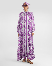 This long shirt dress in twill with Majolica print is a versatile and sophisticated garment, perfect for adding a touch of elegance to your wardrobe. With pockets and side slits, it offers a modern and functional design. Long twill shirt dress with Majolica print: • Multi-coloured • With pockets and side slits • Fitted base • Long sleeves • Square cuff with button and buttonhole • The model is 175 cm tall and wears size 40 IT • Made in Italy The difference in the print placement that you may find on this product is a feature of Dolce&Gabbana’s “Handmade” pieces. A detail that makes every garment or accessory unique and exclusive. External Composition: 100% Silk