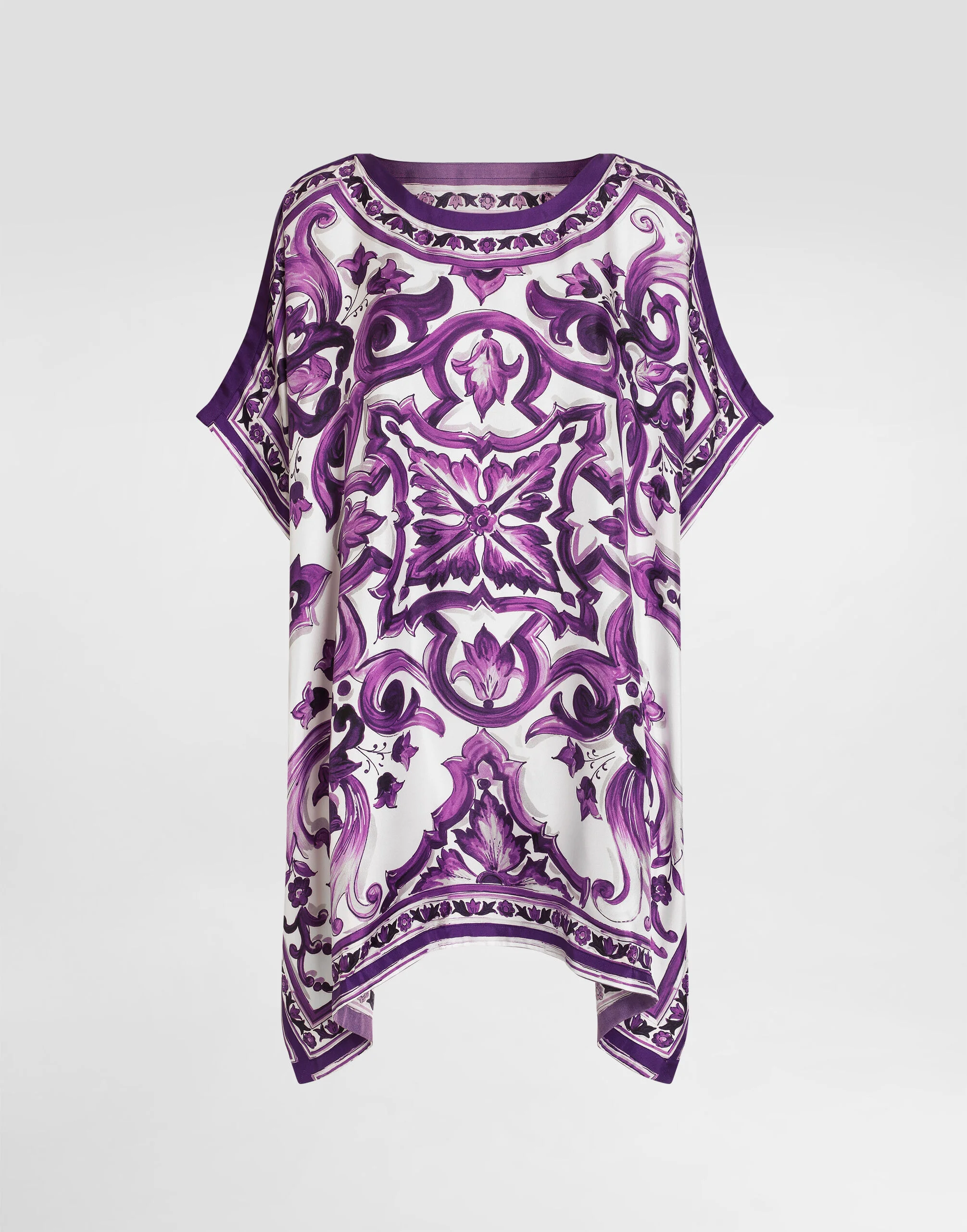 This caftan dress embodies timeless elegance and sophisticated simplicity. Perfect for those looking for a refined and versatile look, it is a garment that stands out for its unique design and the quality of the materials. Twill caftan with Majolica print: • Multi-coloured • 2 cm border • Unlined • The model is 175 cm tall and wears size 40 IT • Made in Italy The difference in the print placement that you may find on this product is a feature of Dolce&Gabbana’s “Handmade” pieces. A detail that makes every garment or accessory unique and exclusive. External Composition: 100% Silk