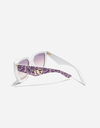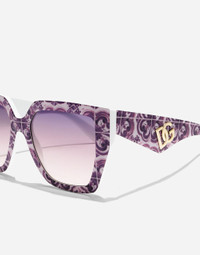 A new color exclusive for the DG Crossed family: featuring the iconic violet maiolica print. • Violet maiolica print acetate frame • Violet maiolica print acetate temples • Dark grey mirror violet lenses • 100% UV protection • Size lens - bridge - temple: 17 - 145 - 49.6 mm • Fitting: Standard • Packaging: Institutional • Made in Italy