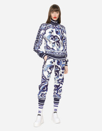 The Blu Mediterraneo line, with its blue majolica print against a white background, is reworking one of Dolce&Gabbana’s signature themes in a modern way. Thanks to a creative and bold mix, it is reworking sporty pieces, such as these stretch cady joggers, and giving them bold, decisive character: • Stretch drawstring waist • Fine-rib waistband and cuffs • Zipped pockets • Inner leg: 76 cm • Hem: 13 cm • The model is 175 cm tall and wears a size IT 40 • Made in Italy Care And Details External composition: 97% Viscose 3% Spandex