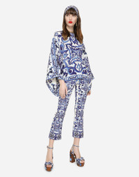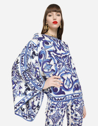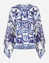 Deep and bright blue shades, which bring the color of clear skies and the deep Sicilian sea to mind, pair with the pure white of seaside homes to provide the inspiration for the Blu Mediterraneo line. This blouse with kimono sleeves emphasizes the concepts of originality, lightness and femininity that Dolce&Gabbana has always favored: • Round neck • Kimono sleeves • Unlined • Keyhole closure on the back with press-stud fastening • The piece measures 65 cm from the rear seam on a size IT 40 • The model is 175 cm tall and wears a size IT 40 • Made in Italy Care And Details External composition: 94% Silk 6% Spandex