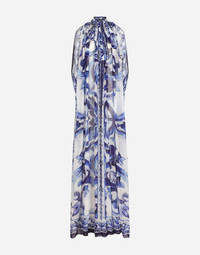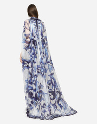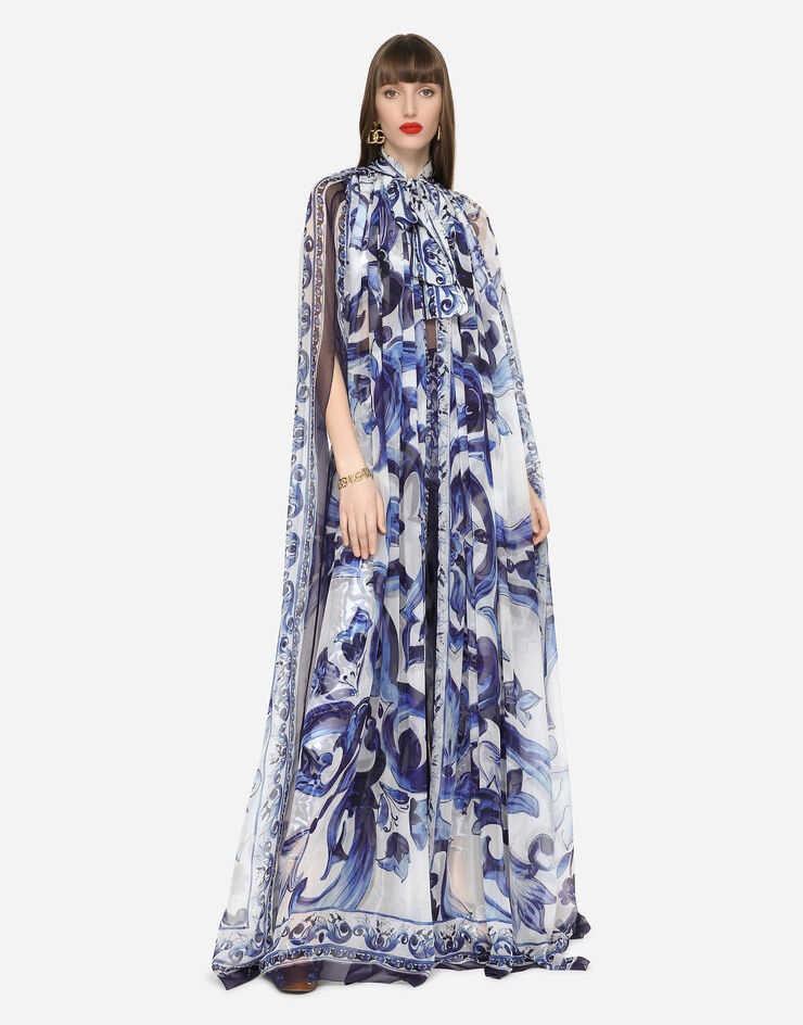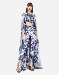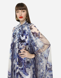 In its Blu Mediterraneo line, Dolce&Gabbana wants to emphasize the concept of beauty, lightness and femininity with the warm harmony of blue and white. The brand does this by creating pieces that pay tribute to the majolica art, a distinctive note of originality and uniqueness inherent to Italian culture, such as this silk chiffon cape: • Round neck with scarf that can be tied into a bow • Regular fit • Unlined • The piece measures 172 cm from the rear seam on a size IT 40 • The model is 175 cm tall and wears a size IT 40 • Made in Italy Care And Details External composition: 100% Silk