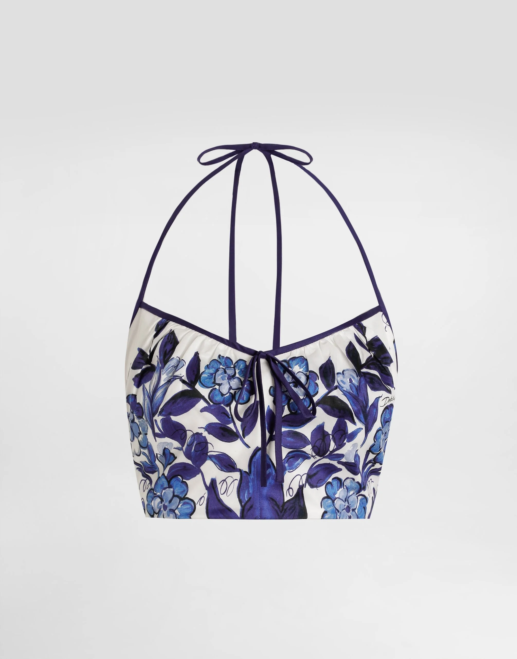 This elegant cotton satin top with Majolica print is a versatile and refined garment, perfect for adding a touch of style to your wardrobe. Majolica-print cotton satin top: • Multi-colored • The model is 175 cm tall and wears size 40 IT • Made in Italy The difference in the print placement that you may find on this product is a feature of Dolce&Gabbana’s “Handmade” pieces. A detail that makes every garment or accessory unique and exclusive. External Composition: 100% Cotton Internal Composition: 100% Cotton