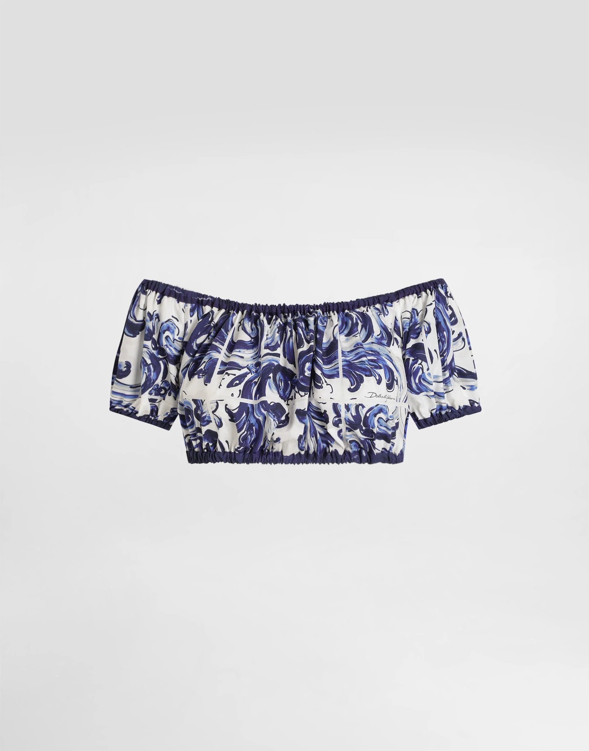 This top is a versatile and fashionable piece that is perfect for adding a pop of color and style to your wardrobe. With its unlined design and Majolica print, it is ideal for creating fresh and vibrant looks. Majolica-print cotton top: • Multi-colored • Elastic at the neckline, bottom and bottom of the sleeves • Unlined • The model is 175 cm tall and wears size 40 IT • Made in Italy The difference in the print placement that you may find on this product is a feature of Dolce&Gabbana’s “Handmade” pieces. A detail that makes every garment or accessory unique and exclusive. External Composition: 100% Cotton