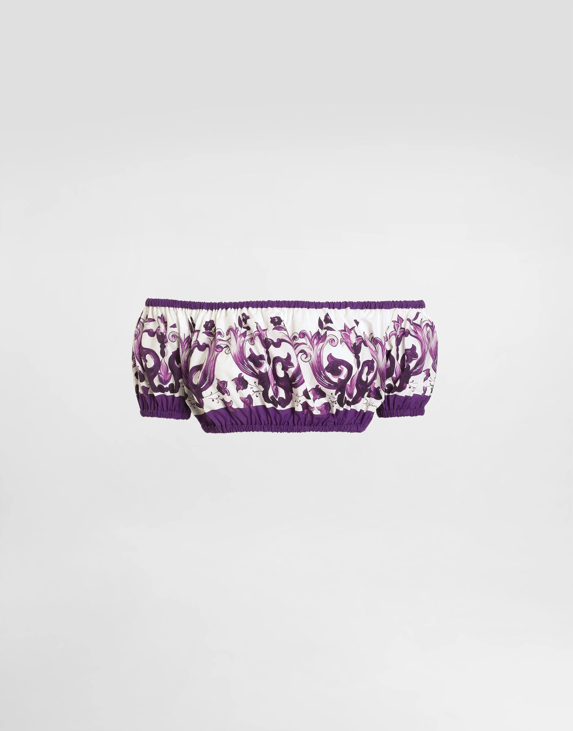 This poplin top is a versatile and fashionable piece that is perfect for adding a touch of style to your everyday wardrobe. With its unique design and Majolica print, it stands out for its elegance and character. Poplin top with Majolica print: • Multi-coloured • The model is 175 cm tall and wears size 40 IT • Made in Italy The difference in the print placement that you may find on this product is a feature of Dolce&Gabbana’s “Handmade” pieces. A detail that makes every garment or accessory unique and exclusive. External Composition: 100% Cotton