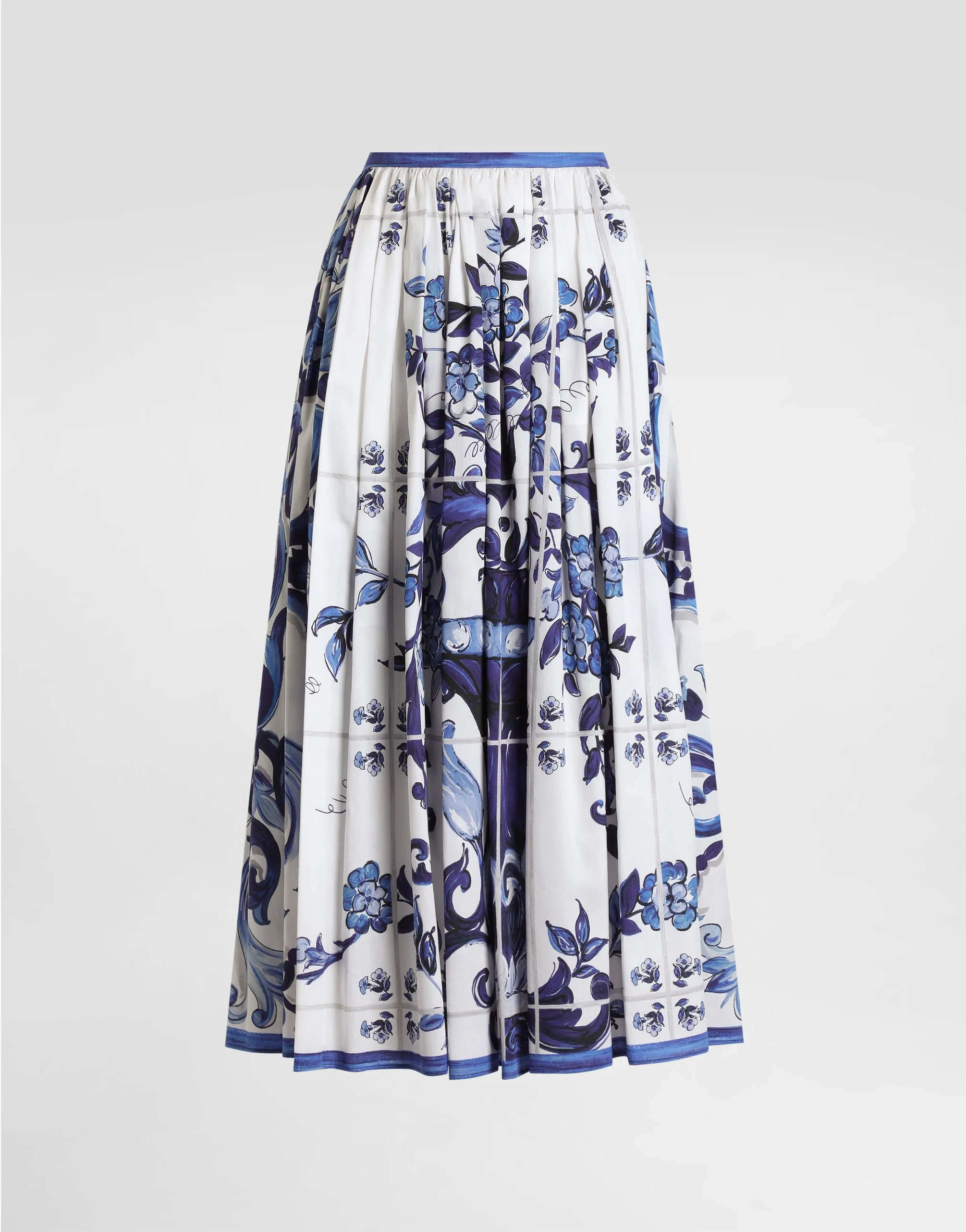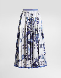Majolica-print long cotton satin skirt