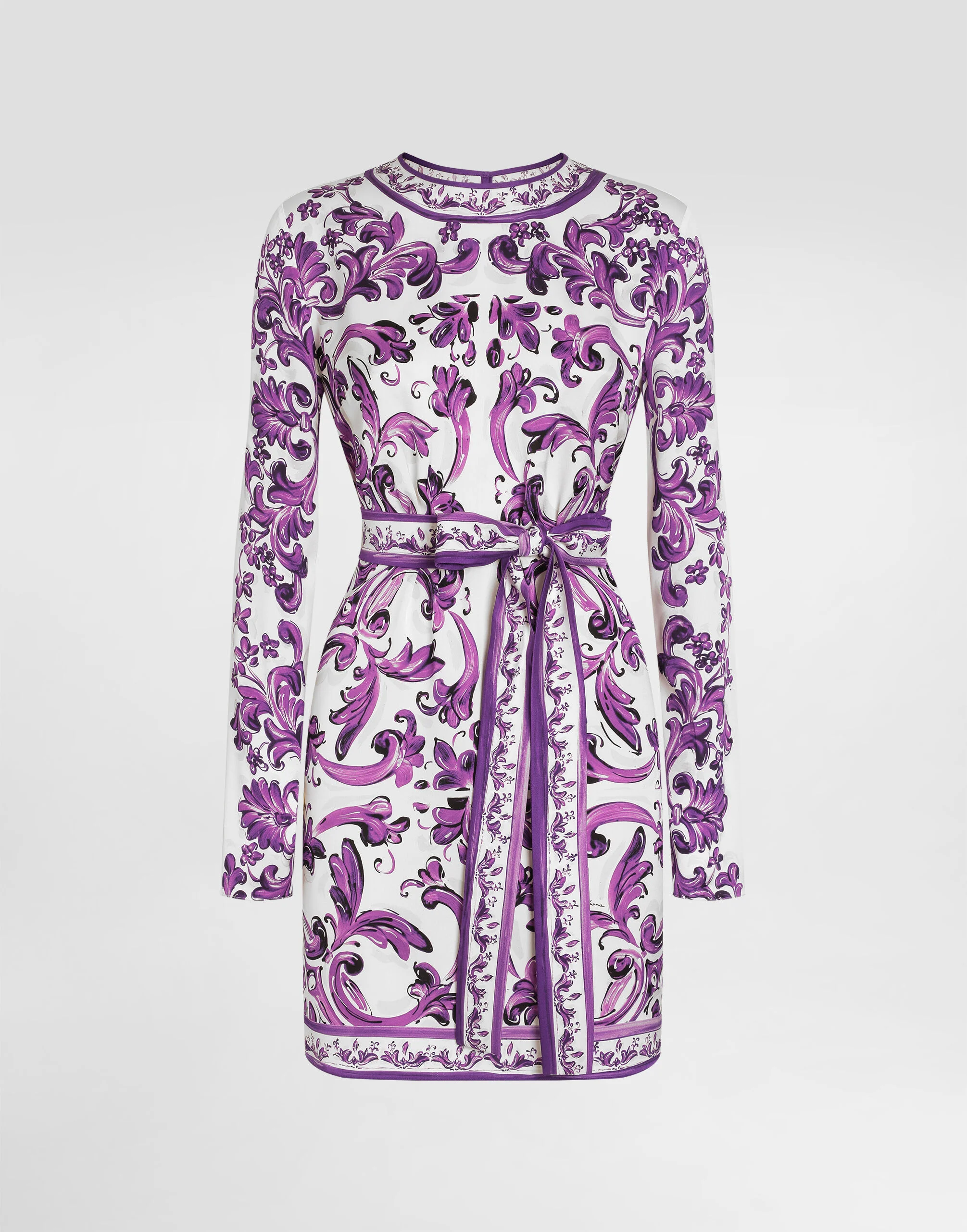 This dress is an example of timeless elegance, with its flowing silhouette and Majolica print adding an artistic and vibrant touch. Perfect for those looking for a sophisticated and unique look. Charmeuse dress with Majolica print: • Multi-coloured • Crew neck • Back with drop and poussoir closure • Separate belt • Skirt length from waist 50 cm • The model is 175 cm tall and wears size 40 IT • Made in Italy The difference in the print placement that you may find on this product is a feature of Dolce&Gabbana’s “Handmade” pieces. A detail that makes every garment or accessory unique and exclusive. External Composition: 91% Silk, 9% Elastane