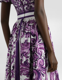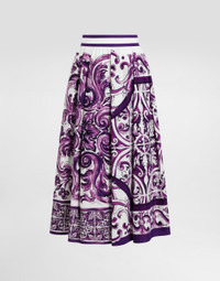 This pleated skirt stands out for its sophisticated design and Majolica print that recalls Italian elegance and tradition. Perfect for those looking for a versatile and trendy piece, this skirt is a must-have in any woman's wardrobe. Pleated skirt in poplin with Majolica print: • Multi-coloured • Waist trimmed with seam pockets • High belt finished 5 cm on size 40 IT • Zip at the center back • Unlined belt • The model is 175 cm tall and wears size 40 IT • Made in Italy The difference in the print placement that you may find on this product is a feature of Dolce&Gabbana’s “Handmade” pieces. A detail that makes every garment or accessory unique and exclusive. External Composition: 100% Cotton