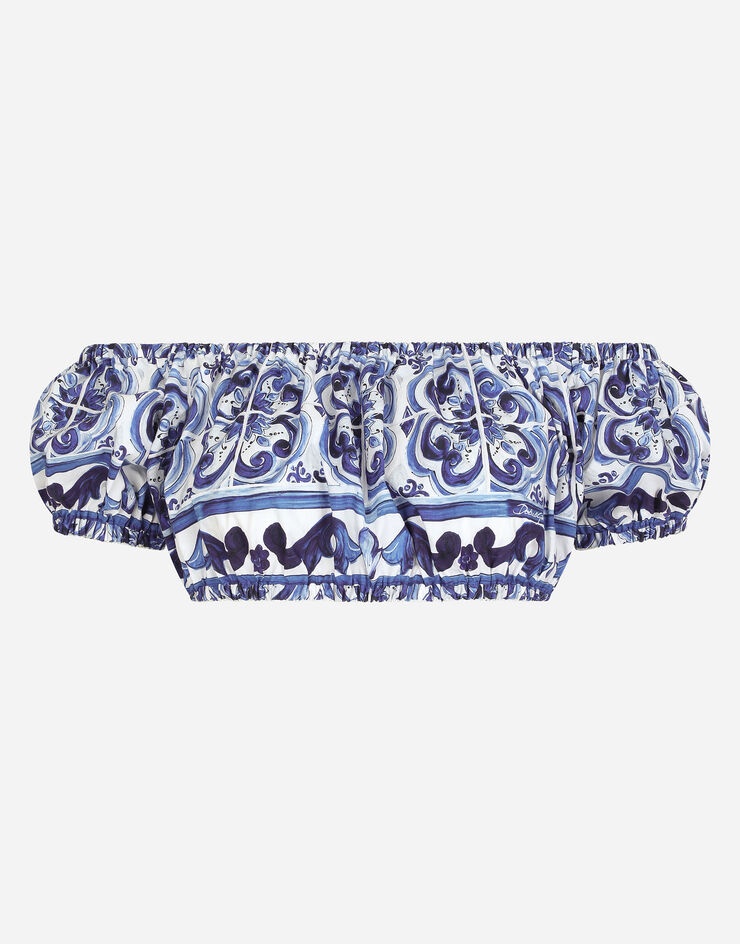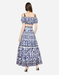 Majolica-print poplin crop top