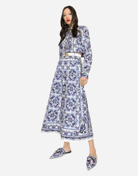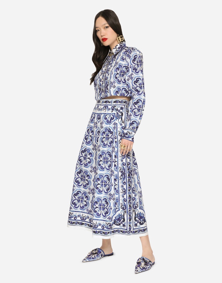The summer of majolica tiles told by Dolce&Gabbana through its Blu Mediterraneo line guides us and invites us to discover iconic pieces. Theses culottes in cotton poplin are made special by the unique placed prints and celebrate the originality that has always been a key part of the brand’s signature aesthetic: • Dolce high waist • Slant front pockets • Welt back pockets • Belt loops • Inner leg: 61 cm • Hem: 42 cm • Zipper and button fastening with branded bottom edge • The model is 175 cm tall and wears a size IT 40 • Made in Italy Care And Details External composition: 100% Cotton