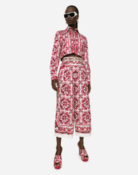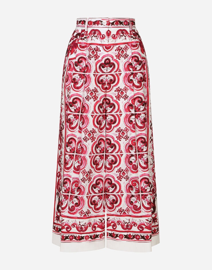 Majolica-print cotton poplin culottes: • Multi-colored • Dolce high waist • Slant front pockets • Welt back pockets • Belt loops • Inner leg: 61 cm • Hem: 42 cm • Zipper and button fastening with branded bottom edge • The model is 175 cm tall and wears a size IT 40 • Made in Italy The difference in the print placement that you may find on this product is a feature of Dolce&Gabbana’s “Handmade” pieces. A detail that makes every garment or accessory unique and exclusive. Care And Details External composition: 100% Cotton