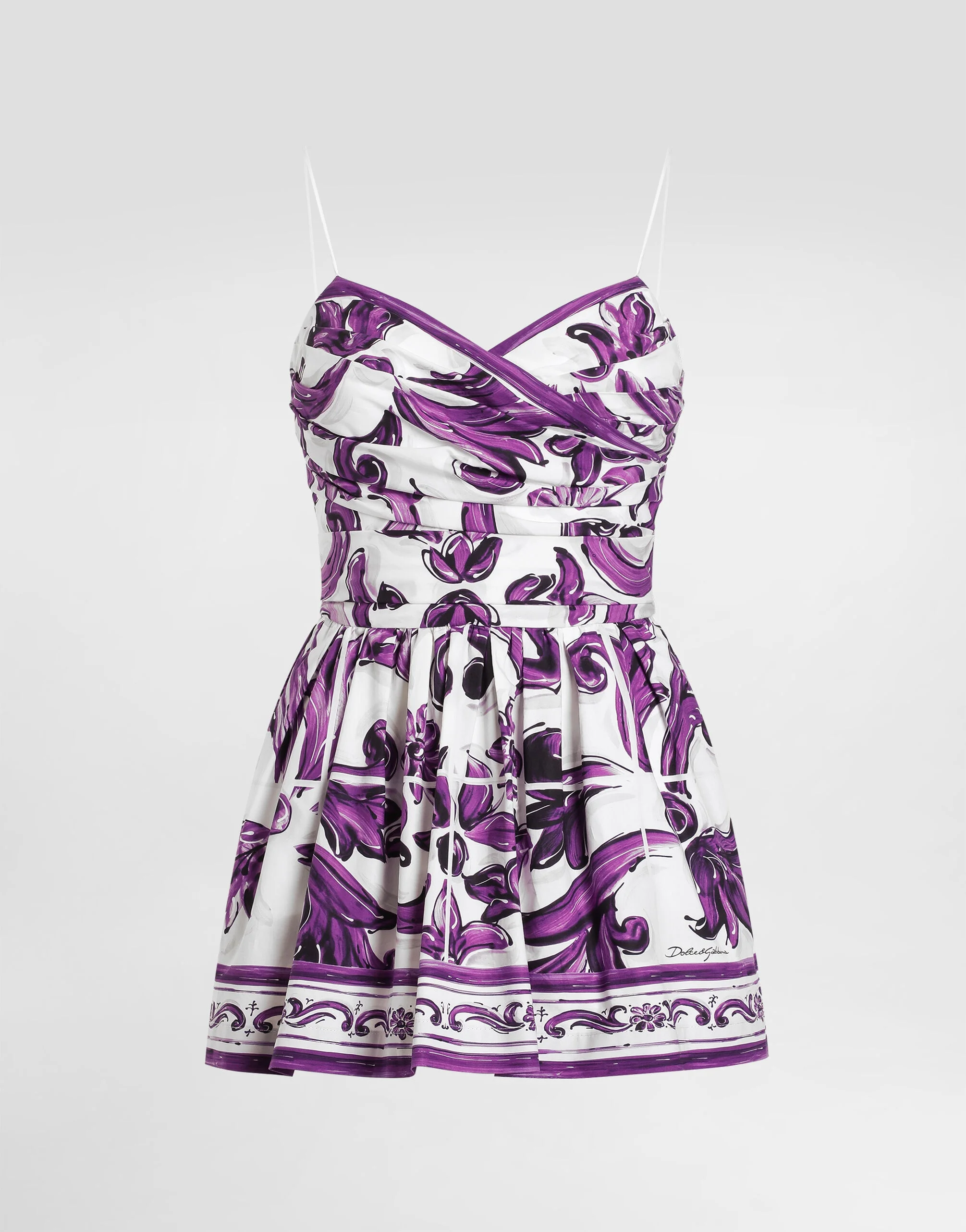 This poplin dress with Majolica print is the emblem of Dolce&Gabbana craftsmanship, where every detail is taken care of to offer a unique and refined garment. The particularity of the prints, the result of careful manual work, makes each piece exclusive and unrepeatable. Poplin dress with Majolica print: • Multi-coloured • Inner bodice • The model is 175 cm tall and wears size 40 IT • Made in Italy The difference in the print placement that you may find on this product is a feature of Dolce&Gabbana’s “Handmade” pieces. A detail that makes every garment or accessory unique and exclusive. External Composition: 100% CottonInternal Composition: 97% Cotton, 3% Elastane
