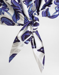 This shirt is an elegant example of women's fashion, perfect for adding a touch of unique style to your wardrobe. With distinctive details and the vibrant Majolica print, it represents the essence of craftsmanship and contemporary design. Majolica-print poplin shirt: • Multi-colored • Short sleeves • Tie bow at the front • Front closed with buttonholes and buttons • Back with vertical darts • The model is 175 cm tall and wears size 40 IT • Made in Italy The difference in the print placement that you may find on this product is a feature of Dolce&Gabbana’s “Handmade” pieces. A detail that makes every garment or accessory unique and exclusive. External Composition: 100% Cotton