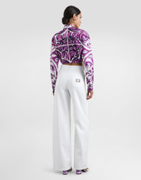 This shirt embodies the elegance and versatility of the contemporary women's wardrobe, with a distinctive design and unique details. Poplin shirt with Majolica print: • Multi-coloured • Back folds • Long sleeves with square cuff • Buttonhole and button closure • The model is 175 cm tall and wears size 40 IT • Made in Italy The difference in the print placement that you may find on this product is a feature of Dolce&Gabbana’s “Handmade” pieces. A detail that makes every garment or accessory unique and exclusive. External Composition: 100% Cotton