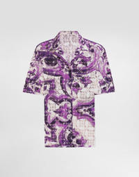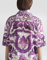 This crochet lace shirt represents the essence of elegance and femininity. Perfect for adding a touch of sophistication to your wardrobe, it is ideal for special occasions or for a casual chic look. Crochet lace shirt with Majolica print: • Multi-coloured • Lapel collar • Short sleeves • Oversized model • The model is 175 cm tall and wears size 40 IT • Made in Italy The difference in the print placement that you may find on this product is a feature of Dolce&Gabbana’s “Handmade” pieces. A detail that makes every garment or accessory unique and exclusive. External Composition: 100% Cotton