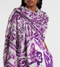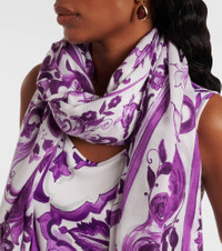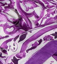 Dolce&Gabbana's accessories inject outfits with a dash of Italian flair. This scarf is made from a fluid, silk-infused fabric and boasts the house's iconic Majolica motif in vibrant hues. Product Details - Material: 85% modal, 15% silk - Care instructions: dry clean - Made in Italy - Designer color name: Maiolica Fdo Viola - Item color: purple, white - Includes: presentation box - Item number: P01064529 Size & Fit - Length 198cm-78" - Width 134cm-53"