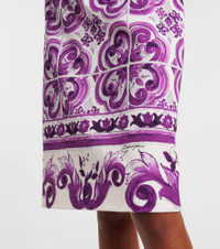 Sicilian culture is at the heart of Dolce&Gabbana's aesthetic, which attributes most of its bold styles to its Italian heritage. This pencil skirt is made from a silk blend and features the brand's signature Majolica print. Product Details - Material: 94% silk, 6% elastane - Care instructions: dry clean - Made in Italy - Designer color name: Mix Maiolica Viola - Item color: white, purple - Lining: 91% silk, 9% elastane - Closure: zipped back - Item number: P01041105 Size & Fit - True to size - Non-stretchy fabric - High-waisted - slit length 18cm-7" - The model seen in the picture is 178cm-5'10" and wearing a size IT 40