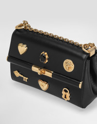 The Marlene crossbody bag is a perfect combination of elegance and functionality, enriched with vintage brass embroidery that gives a touch of timeless class. Marlene City Mini bag in palmated calfskin with embroidery: • Multi-colored • Fixed metal shoulder strap • Vintage brass plating • External customization with swivel and stamp with film • Interior with flat pocket • Measurements: H10.5 x W18 x D7 cm • Can hold keys, card holder and phone • Made in Italy External Composition: 100% Calfskin Internal Composition: 100% Lambskin