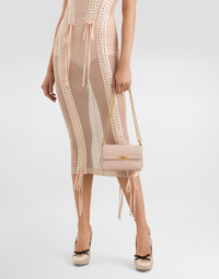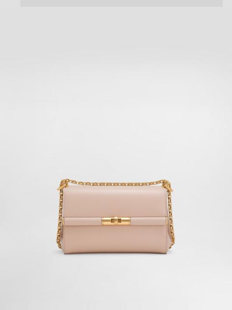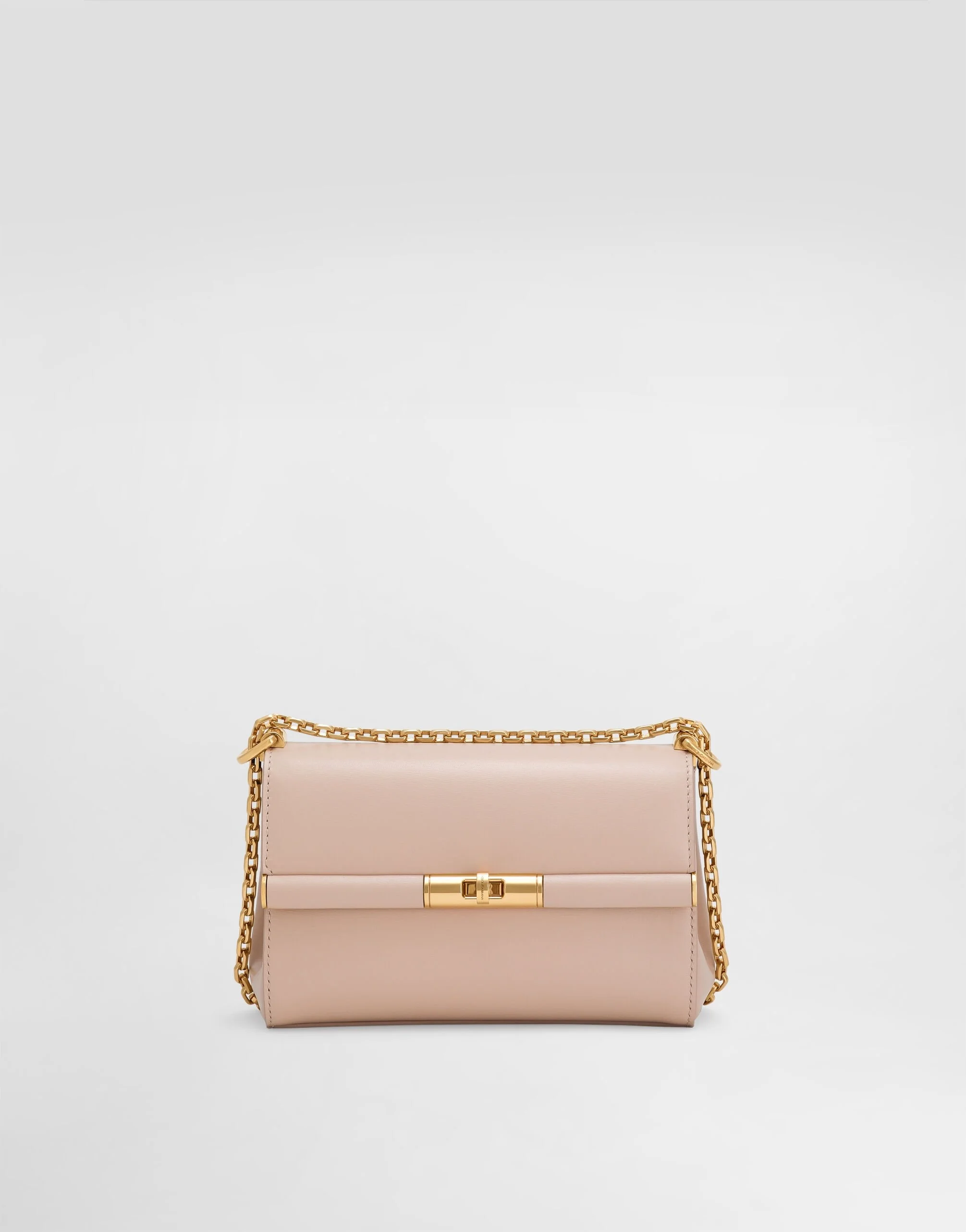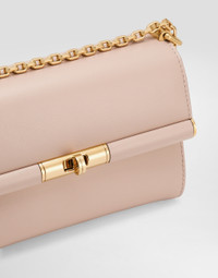 Featuring a sophisticated and understated line, this new Marlene bag comes in boarded calfskin and has a sliding chain strap. Hand-grained calfskin Marlene shoulder bag: • Blush • Front flap with branded turn-lock fastening • Adjustable chain strap • Flat pocket on back • Nappa leather lining and flat pocket • Metal feet studs on the base • Item comes with a branded dust bag • Measurements: H18 x W10.6 x D7 cm • Made in Italy External composition: 100% Calfskin Internal composition: 70% Lambskin 30% Calfskin