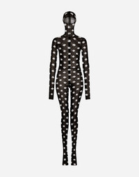 Marquisette jumpsuit with hood and logo print