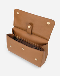 The brand icon par excellence, this maxi Sicily bag comes in Dauphine calfskin. Understated and feminine, it comes with the logo tag featuring two metal-plated finishes. Maxi Sicily bag in Dauphine calfskin: • Brown • Front flap with hidden triple magnetic fastening • Logo tag featuring two metal plated finishes • Top handle and detachable Dauphine calfskin strap • Printed fabric lining • Inner pocket with branded zip, two flat pockets and a card slot compartment • Metal feet studs on the base • Item comes with a branded dust bag • Measurements: H16 x W32 x D22 cm • Made in Italy External composition: 100% Calfskin Internal composition: 80% Cotton 20% Calfskin