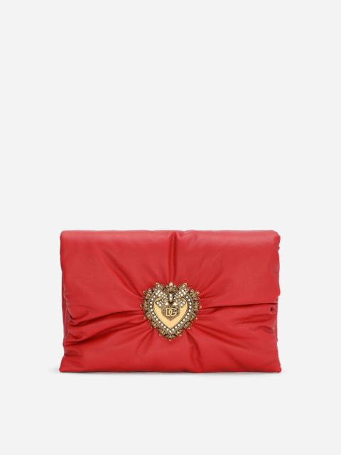 Medium calfskin Devotion Soft bag: • Branded bejeweled heart crafted from a metal alloy with pearl inlay • Flap fastening with concealed double magnetic fastening • Top zipper with Devotion slider • Detachable chain strap with calfskin insert • Calfskin lining with flat pocket • Item comes with a branded dust bag • Measurements: 18.5 x 30 x 7 cm • Made in Italy Care And Details External composition: 100% Calfskin Internal composition: 100% Calfskin