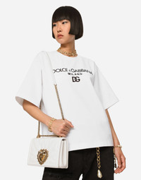 • Adjustable chain strap • Front flap with bejeweled branded heart hand-tooled from a metal alloy with pearl inlay • Concealed press-stud fastening • Nappa leather lining with a pocket with a zipper featuring a Devotion slider • Item comes with a branded dust bag • Measurements. 14.5 x 21 x 3 cm • Made in Italy Care And Details External composition: 100% Lambskin