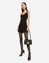 • Adjustable chain strap • Front flap with bejeweled branded heart hand-tooled from a metal alloy with pearl inlay • Concealed press-stud fastening • Nappa leather lining with a pocket with a zipper featuring a Devotion slider • Item comes with a branded dust bag • Measurements. 14.5 x 21 x 3 cm • Made in Italy Care And Details External composition: 100% Lambskin