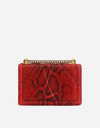 This medium python skin bag from the Devotion line comes with the exclusive bejeweled heart clasp with vintage gold finish and the strap inspired by the techniques of high-quality jewelers. Medium Devotion shoulder bag in python skin: • Red • Front flap with bejeweled branded heart made from hand-tooled metal alloy with pearl inlay • Concealed press-stud fastening • Adjustable chain shoulder strap with a python skin insert so it can be worn over the shoulder or across the body • Nappa leather lining featuring a pocket with zipper and Devotion slider • Item comes in themed packaging • Measurements: H14.5 x W21 x D3 cm • Made in Italy External composition: 100% Python Molurus Internal composition: 95% Lambskin 5% Viscose