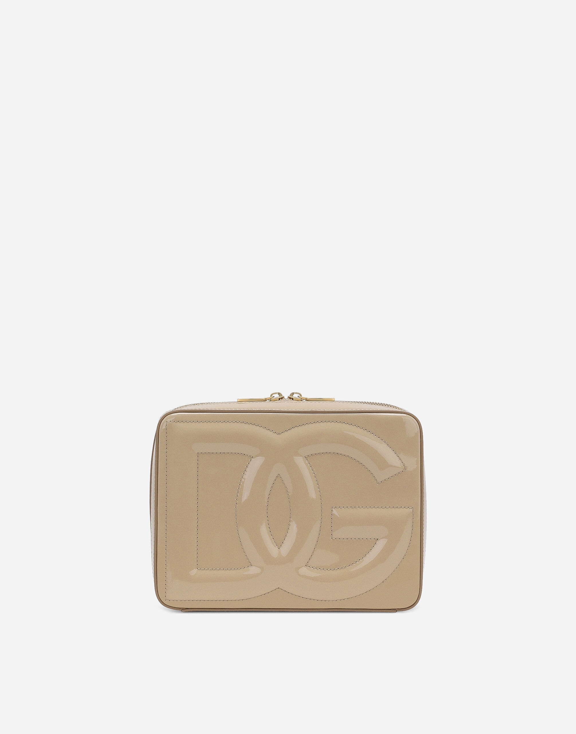 Iconic style is being given some contemporary edge, creating a new vision of the brand’s signature aesthetic. Defined by its refined geometric lines, this medium camera bag pays tribute to our Logo. Practical and versatile, it comes in 100% patent leather and features the quilted 3D-effect DG logo. Medium patent leather DG Logo camera bag: • Beige • Zipper with double branded slider • Adjustable and detachable patent leather strap • Alcantara lining, zipped pocket and a compartment with strap and press-stud button • Item comes with a branded dust bag • Measurements: H16 x W20 x D5.5 cm • Made in Italy External composition: 100% Calfskin Internal composition: 92% Calfskin 5% Viscose 2% Polyamide 1% Spandex