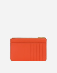 This calfskin card holder with zipper features the quilted, 3D-effect DG logo. Practical and compact, it comes with a bellow compartment with top zipper. Medium calfskin DG Logo card holder with zipper: • Orange • Five card slots and one flat pocket on the back • Flat front pocket • Top coin pocket with zipper and branded slider • Measurements: H9 x W13.5 x D1 cm • Made in Italy External composition: 100% Calfskin Internal composition: 100% Viscose