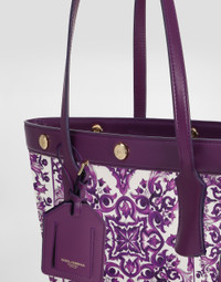 The Atene tote bag is a perfect combination of elegance and functionality, featuring a Majolica print on canvas that recalls the art and culture of the Mediterranean. Shopping bag Atene in Majolica printed canvas: • Multi-coloured • Leather handles • Snap button closure • Vintage brass buckle • External and internal customization with stamp and film • Removable zip pocket • Item equipped with a logo bag and pre-assembled box • Measurements: H23 x W23.5 x D8 cm • Made in Italy The difference in the print placement that you may find on this product is a feature of Dolce&Gabbana’s “Handmade” pieces. A detail that makes every garment or accessory unique and exclusive. External Composition: 88% Cotton, 10% Calfskin 2% PVCInternal Composition: 90% Cotton, 10% Calfskin