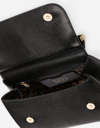 The Sicily bag is a timeless accessory that pays homage to all the beauty Sicily has to offer, the place that represents a source of inspiration for Dolce&Gabbana. Medium Sicily handbag in iguana-print leather: • Front flap with concealed press-stud fastening •Top handle and adjustable and detachable strap in calfskin with light gold-plated details • Fabric lining • Zipped inner pocket and cell phone pocket •Metal feet studs • Item comes with branded dust bag • Measurements: 26 x 21 x 12 cm • Made in Italy Care And Details External composition: 100% Calfskin Internal composition: 80% Cotton 20% Calfskin