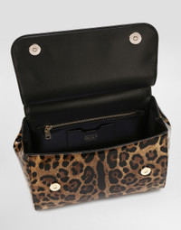 Medium Sicily bag in leopard-print polished calfskin