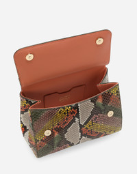 The brand icon par excellence, this medium Sicily bag comes in python skin. Understated and feminine, it comes with the logo tag featuring two metal plating finishes. Medium python skin Sicily bag: • Multi-colored • Front flap with hidden double magnetic fastening • Logo tag featuring two metal plating finishes • Top handle and adjustable, detachable strap in python skin • Calfskin lining • Inner pocket with branded zipper and a cell phone holder • Item comes with a branded dust bag • Measurements: H18.5 x W20 x D10 cm • Made in Italy External composition: 100% Reticulated Python Internal composition: 100% Calfskin