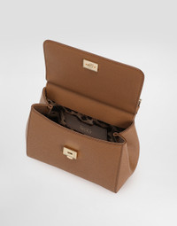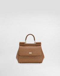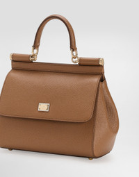 The brand icon par excellence this medium Sicily bag comes in Dauphine calfskin. Understated and feminine it comes with the logo tag featuring two metal plating finishes. Medium Sicily bag in Dauphine calfskin: • Brown • Front flap with hidden double magnetic fastening • Logo tag featuring two metal plating finishes • Top handle and adjustable detachable strap in Dauphine calfskin • Printed fabric lining • Inner pocket with branded zipper and a cell phone holder • Metal feet studs on the base • Item comes with a branded dust bag • Measurements: H18.5 x W20 x D10 cm • Made in Italy External Composition: 100% Calfskin Internal Composition: 90% Cotton 10% Calfskin