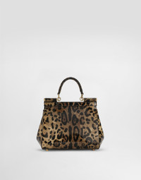 The fusion and alchemy between the history and creativity of D&G’s designers and the contemporary vision of Kim Kardashian, style and beauty icon, lie at the heart of the new Runway collection. The brand’s origins and invaluable archives have been reworked and reinterpreted to imbue Dolce&Gabbana’s signature style with new life. Medium Sicily bag in leopard-print polished calfskin: • Leopard print • Front flap with hidden double magnetic fastening • Logo tag featuring two metal plating finishes • Top handle and adjustable, detachable strap in leopard-print polished calfskin • Printed fabric lining • Inner pocket • Item comes with a branded dust bag • Measurements: H18.5 x W20 x D10 cm • Made in Italy External composition: 100% Calfskin