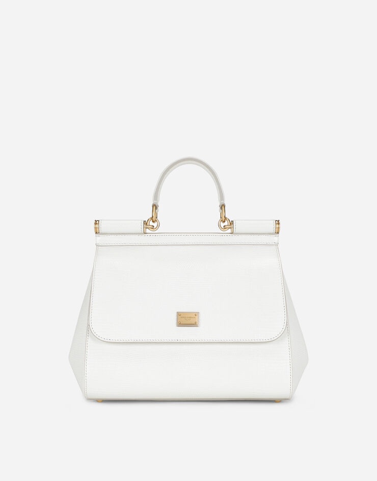 The Sicily bag is a timeless accessory that pays homage to all the beauty Sicily has to offer, the place that represents a source of inspiration for Dolce&Gabbana. Medium Sicily handbag in iguana-print leather: • Front flap with concealed press-stud fastening •Top handle and adjustable and detachable strap in calfskin with light gold-plated details • Fabric lining • Zipped inner pocket and cell phone pocket •Metal feet studs • Item comes with branded dust bag • Measurements: 26 x 21 x 12 cm • Made in Italy Care And Details External composition: 100% Calfskin Internal composition: 80% Cotton 20% Calfskin