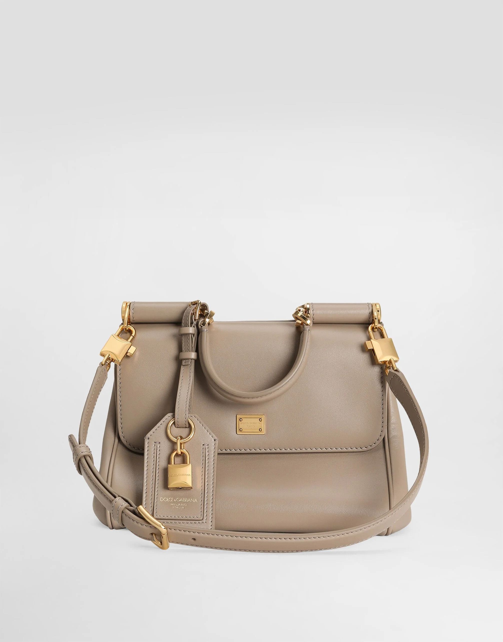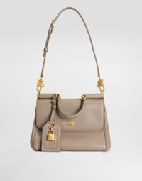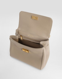 The My Sicily bag is a timeless accessory, perfect for enhancing any outfit with a touch of elegance. Crafted in plonge calfskin with vintage brass trim, it is a symbol of sophistication and style. My Sicily handbag in plonge calfskin: • Beige • Leather handles and removable and adjustable shoulder strap • Tuck-in closure • Vintage brass plating • External customization with monogalvanic plate and stamp with film • Interior with zip pocket and stamp with film • Item equipped with a logo bag and pre-assembled box • Measurements: H19 x W21 x D14 cm • Can hold keys, card holder and phone • Made in Italy External Composition: 95% Calfskin, 5% PVC Internal Composition: 75% Cotton, 15% Calfskin, 10% Acrylic This product is made with leather from tanneries certified according to environmental standards.